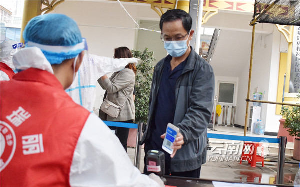 ●排隊(duì)等候須保持1米以上距離,不相互交談。(云南網(wǎng) 記者夏方海)
