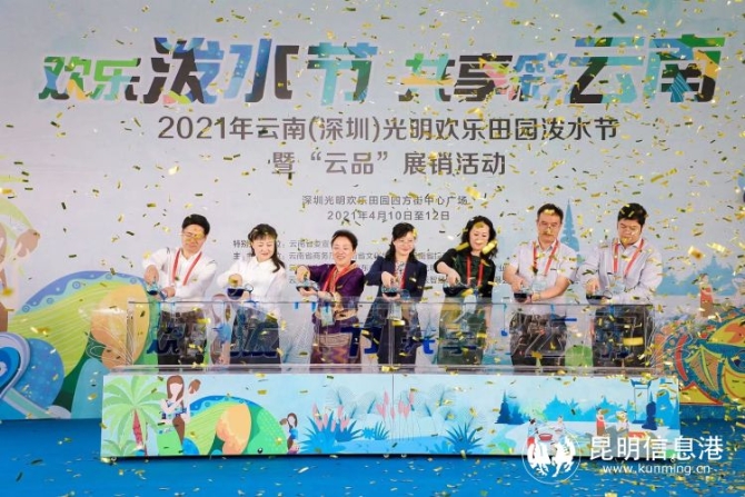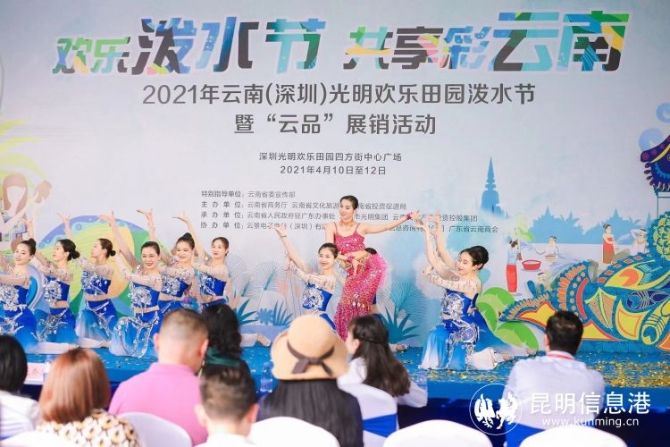 昆明信息港訊 4月10日,由云南省委宣傳部指導(dǎo),省文化和旅游廳、省商務(wù)廳、省投資促進(jìn)局等部門聯(lián)合主辦,省人民政府駐廣東辦事處和深圳市光明集團(tuán)、云南文投集團(tuán)共同承辦的2021年云南(深圳)光明歡樂田園潑水節(jié)暨“云品”展銷活動(dòng)在深圳光明歡樂田園四方街中心廣場(chǎng)舉辦。