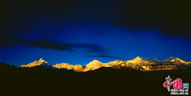 梅里雪山地處滇、川、藏三省結合部,橫斷山脈中段怒江與瀾滄江之間,北連西藏阿冬格尼山,南與碧羅雪山相接,平均海拔在6000米以上的有十三座山峰,俗稱“太子十三峰”。它也是三江并流世界自然遺產(chǎn)腹心地,以其巍峨壯麗、神秘莫測而聞名于世,卡格博峰下,冰斗、冰川連綿,猶如玉龍伸延,冰雪耀眼奪目,是世界稀有的海洋性現(xiàn)代冰川。山下的曲登閣寺、袞瑪頂寺(飛來寺)是藏族群眾朝拜神山的寺宇。