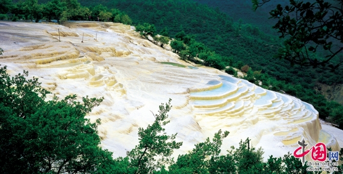 白水臺位于哈巴雪山山麓,被稱為“仙人遺田”是我國最大的華泉臺地,由于水中富含碳酸氫鈣,長久以來的溶解沉淀形成了白水臺這個自然奇觀,整個形狀好似層層梯田,形成無數(shù)塊層層疊疊蓄滿水的玉埂銀丘,白水臺不僅風景秀麗,還是納西族東巴文化的發(fā)祥地,每年農(nóng)歷二月八,納西人民在這里舉辦盛大的“朝白水”活動。