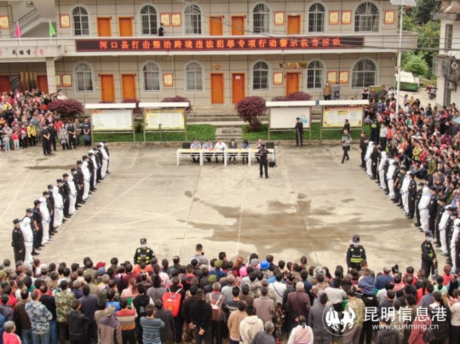 昆明信息港訊 記者昝娟娟 通訊員鄭紅亮 鄒昌義 4月11日,河口縣在橋頭鄉(xiāng)聯合開展打擊整治跨境違法犯罪專項行動警示教育活動,紅河邊境管理支隊橋頭邊境派出所積極做好活動期間安全保障工作。