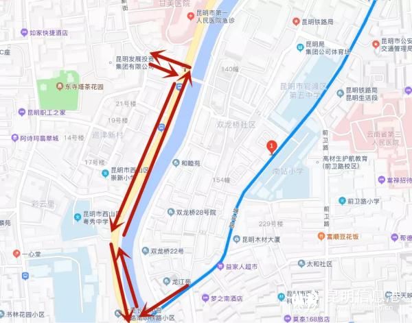 昆明信息港訊 記者合宇聰 4月13日上午,記者從昆明市公安局交通警察支隊獲悉,為有效減少從塘雙路經(jīng)沿河路右轉(zhuǎn)進(jìn)環(huán)城南路的車流量,對雙龍橋路口東口直行車輛的通行影響,提高環(huán)城南路的通行效率,昆明市公安局交警支隊在實(shí)地踏勘調(diào)研后,從即日起對沿河路實(shí)行單向通行。