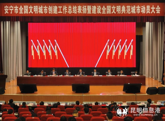 昆明信息港訊 記者楊雁 4月13日,安寧市委、市政府召開安寧市全國文明城市創(chuàng)建工作總結表揚暨建設全國文明典范城市動員大會,在總結表彰的喜氣氛圍中,進一步統(tǒng)一思想、凝心聚力,持續(xù)深入鞏固全市全國文明城市創(chuàng)建成果,推動全國文明城市創(chuàng)建工作持續(xù)深入開展。安寧市定出新目標:將以最高的標準、最嚴的要求,在2023年爭創(chuàng)成為全國文明典范城市,為安寧市高質量發(fā)展提供強大的精神動力。