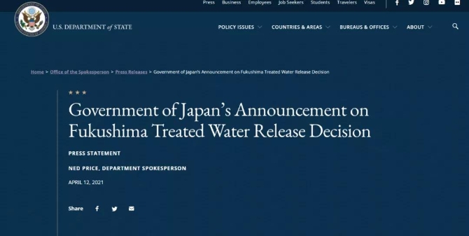 △美國國務(wù)院就日本排放核污染廢水一事的聲明
