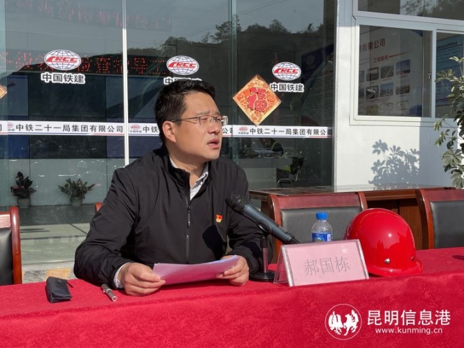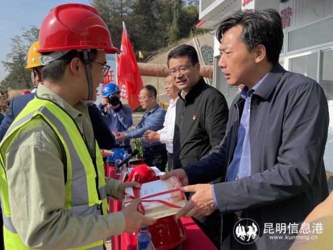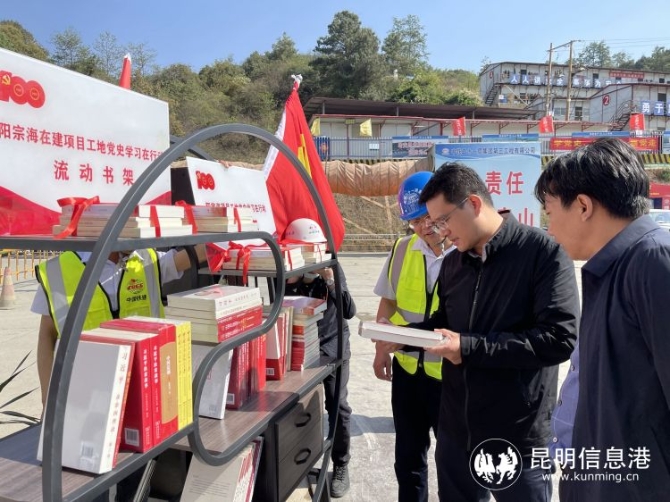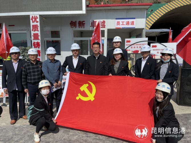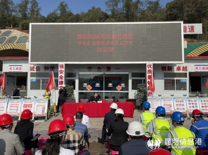 昆明信息港訊 記者龍泉積 4月14日,昆明陽宗海風景名勝區(qū)黨史學(xué)習(xí)教育走進七甸重點在建項目三清高速公路對歌山隧道建設(shè)現(xiàn)場,真正將黨史學(xué)習(xí)教育實踐工作做深、做實、做細,讓黨旗飄揚在重點項目建設(shè)工地上。