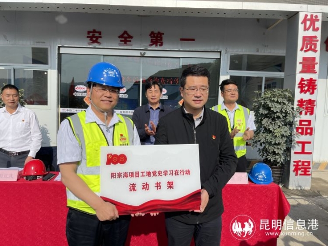 項目建設(shè)在哪里,黨組織就建在哪里,黨的工作就跟進到哪里?,F(xiàn)場,陽宗海風景名勝區(qū)黨工委書記、管委會主任郝國棟出席黨史學(xué)習(xí)教育,向項目方黨員代表贈送了黨史學(xué)習(xí)教育讀本、向三清高速項目方頒授“陽宗海在建項目工地黨史學(xué)習(xí)在行動流動書架”匾牌,并圍繞“學(xué)黨史、知黨情、感黨恩、跟黨走”主題,向現(xiàn)場百余位黨員開展黨史學(xué)習(xí)微課堂教育。