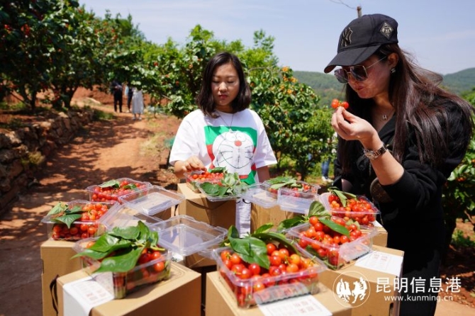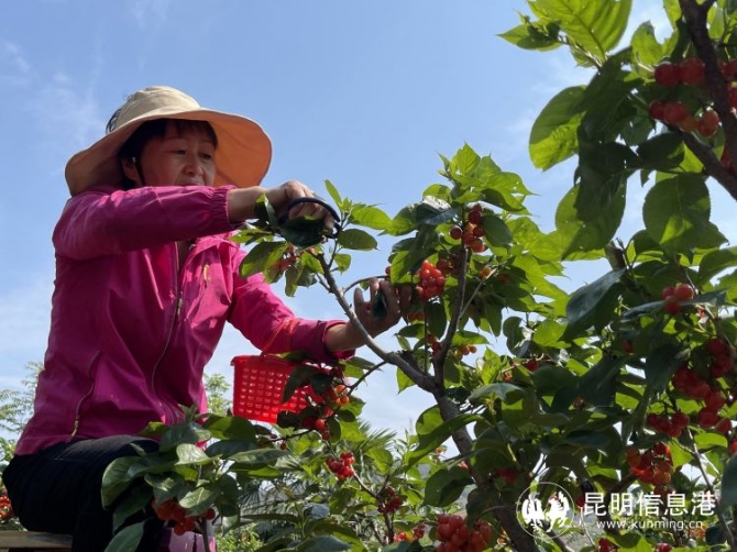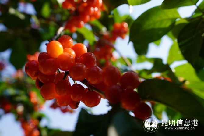 昆明信息港訊 記者龍泉積 “林間嘗盡櫻桃果,下山路上似神仙?!比碎g最美四月天,怎能少得了美美地飽嘗一頓櫻桃。4月15日,昆明陽宗海風(fēng)景名勝區(qū)舉行櫻桃上市新聞發(fā)布會(huì),位于七甸街道內(nèi)的馬郎、松茂、野竹、水塘、頭甸等10個(gè)社區(qū)共11000余畝櫻桃喜獲豐收,采摘期可持續(xù)到5月中旬,入園采摘30元/公斤,入園費(fèi)10-15元/人,購買5公斤可免入園費(fèi)。