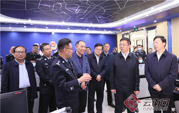 王予波到昆明市公安局交通指揮中心調(diào)研智慧交通平臺(tái)建設(shè)工作。記者 顧彬 攝
