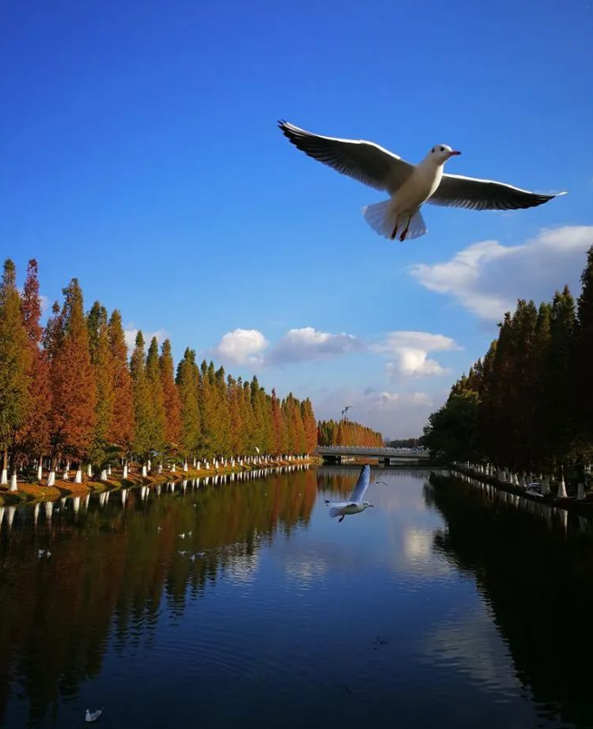 一進(jìn)入星海半島濕地公園,湖畔蘆葦、菖蒲等水生植物叢生,濕地棧道從中蜿蜒穿過(guò),行人可漫步其中,零距離感受濕地野趣。湖塘節(jié)點(diǎn)處還種植了荷花,不時(shí)看到白鷺、喜鵲、翠鳥(niǎo)等野生鳥(niǎo)類,在水草叢中覓食。