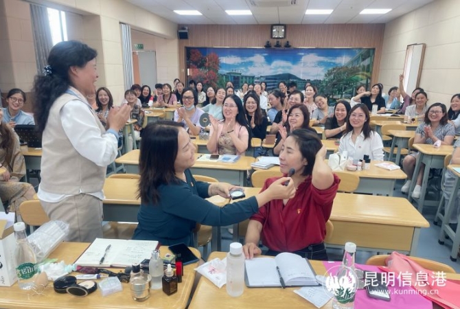 個人形象管理是東方文明禮儀的重點,在這部分的培訓,羅婭文通過觀摩式、體驗式、實操式的教學方法,讓教師們理解和掌握“我們不要化什么妝?”“我們要化什么妝?”“怎么化適合自己的妝?”課程結(jié)束,老師們帶著美麗的妝容,笑顏更燦爛,人也更自信了。
