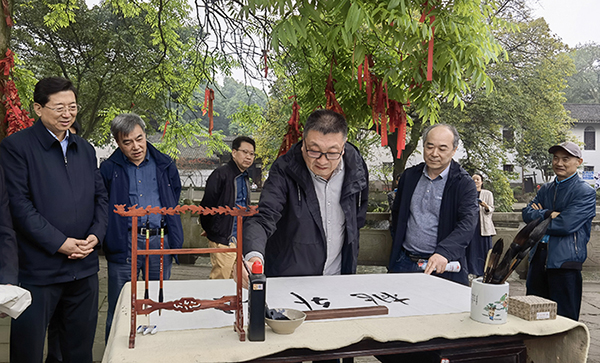 夕佳山下喜揮毫(新華網(wǎng)記者 李雪芹 攝)