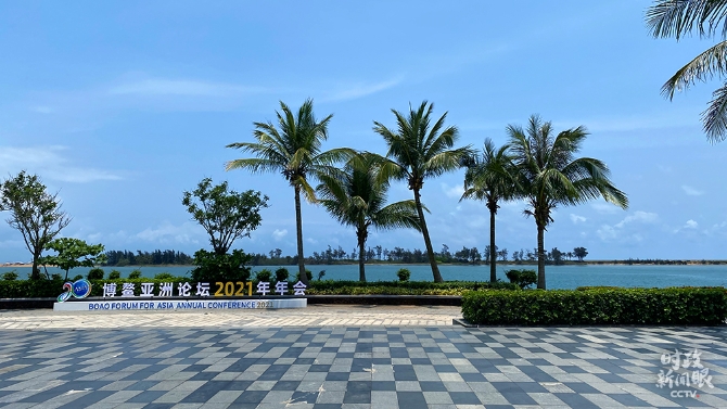 博鰲亞洲論壇2021年年會新聞中心室外,椰風(fēng)海韻。(總臺央視記者耿旭菲拍攝)