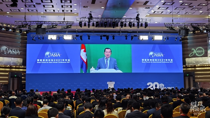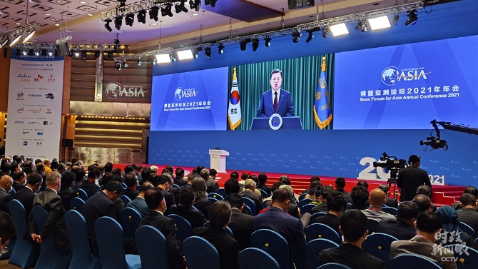 印尼總統(tǒng)佐科、韓國總統(tǒng)文在寅、柬埔寨首相洪森應(yīng)邀以視頻方式出席年會。(總臺央視記者胡瑋拍攝)