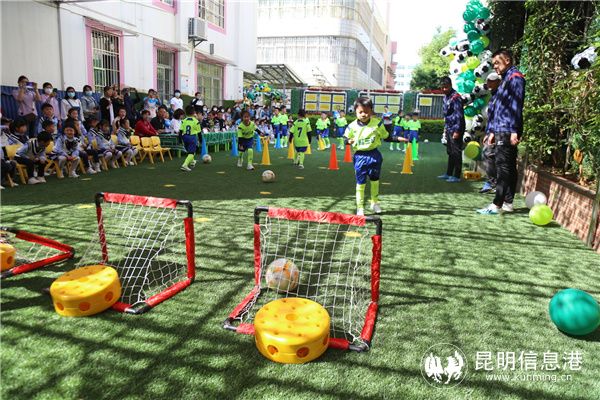 昆明信息港訊 記者黃彩英 通訊員黃雯 4月21日上午,盤龍區(qū)新迎第三幼兒園舉行了“小足球、大夢想——普及幼兒足球、傳承足球精神”啟動儀式,騁請了專業(yè)足球教練于今后每周到園中教學(xué),讓每一位幼兒都能通過足球運動增強體質(zhì)。