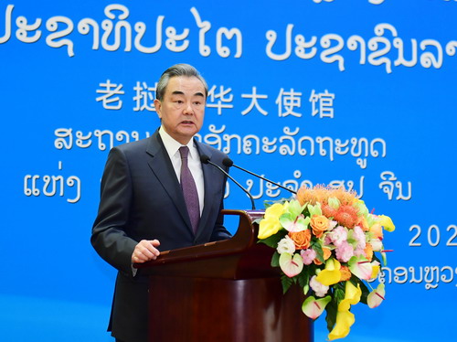 王毅表示,今年1月,習(xí)近平總書記、國家主席同通倫總書記、國家主席共同宣布啟動中老建交60周年暨中老友好年活動,今天的建交招待會就是這一系列活動的高潮之一。