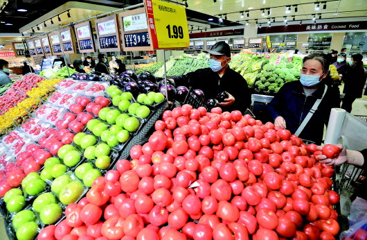 4月9日,顧客在河北省邯鄲市一家超市選購蔬菜。 新華社發(fā)(郝群英攝)