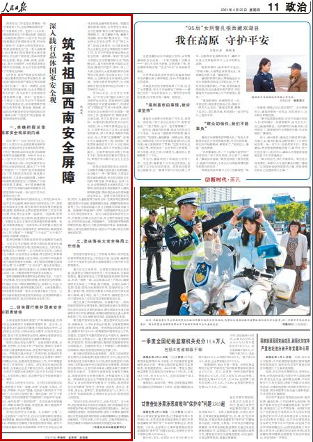 4月22日,《人民日?qǐng)?bào)》刊發(fā)了中共云南省委書記阮成發(fā)的署名文章《深入踐行總體國(guó)家安全觀 筑牢祖國(guó)西南安全屏障》。