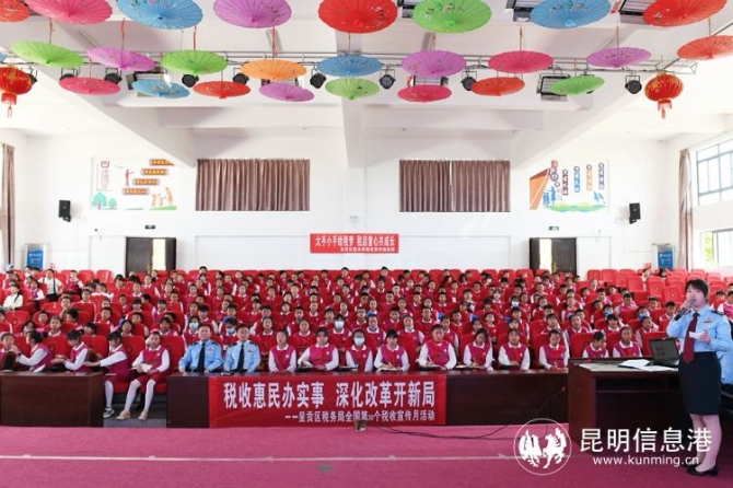 昆明信息港訊 記者段佳琪 “有人聽說過稅收嗎?”“同學(xué)們買零食需不需要交稅呢?”4月22日,呈貢區(qū)稅務(wù)局聯(lián)合呈貢區(qū)第三小學(xué),開展以“大手小手繪稅夢稅啟童心共成長”為主題的稅法宣傳進校園活動。