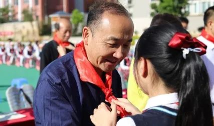 少先隊員為來賓獻(xiàn)紅領(lǐng)巾