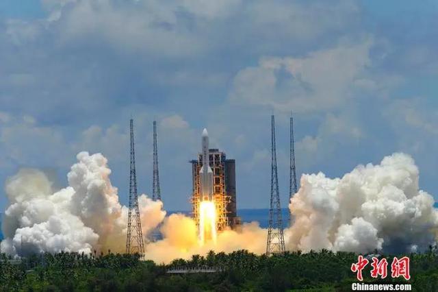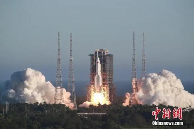 資料圖:2020年7月23日,“長征五號”遙四運(yùn)載火箭托舉著我國首次火星探測任務(wù)“天問一號”探測器,在中國文昌航天發(fā)射場點火升空。郭文彬 攝