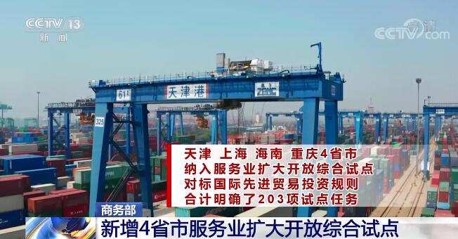 經(jīng)濟(jì)穩(wěn)中向好,開放創(chuàng)新一刻不停。商務(wù)部相關(guān)負(fù)責(zé)人介紹,日前,國務(wù)院批復(fù)同意將天津、上海、海南、重慶4省市納入服務(wù)業(yè)擴(kuò)大開放綜合試點(diǎn),對標(biāo)國際先進(jìn)貿(mào)易投資規(guī)則,合計(jì)明確了203項(xiàng)試點(diǎn)任務(wù)。