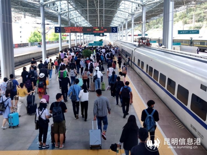為進(jìn)一步滿足省內(nèi)外游客出行,“五一”假期間,昆明局集團(tuán)恢復(fù)昆明至北京、滬寧杭、成渝方向動(dòng)車(chē)的重聯(lián)運(yùn)行,增開(kāi)昆明南至北京西動(dòng)臥,并根據(jù)客流情況采取高峰運(yùn)行圖。