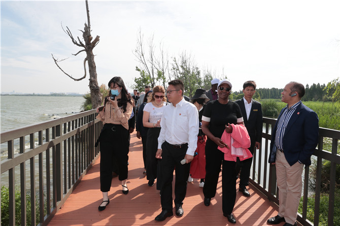 4月24日,外國駐華使節(jié)代表團在昆明撈魚河國家濕地公園參觀了解濕地公園管理及滇池治理的情況。周燦/攝