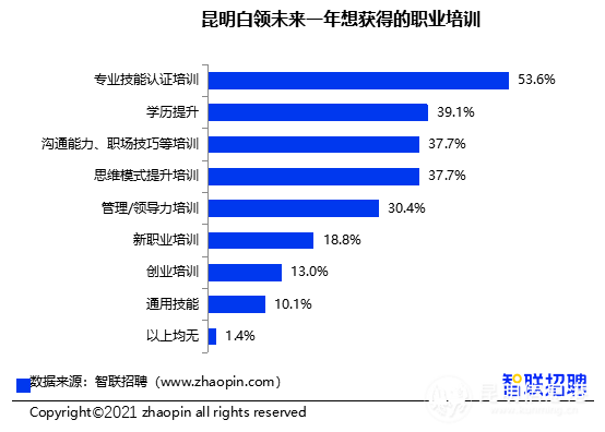 過去一年,20.3%的受訪昆明白領(lǐng)獲得升職加薪,5.8%的白領(lǐng)遭受職級(jí)下降與減薪,二者占比均低于全國平均水平。73.9%的人事業(yè)發(fā)展原地踏步,較全國更高。50.7%的白領(lǐng)接受了職業(yè)教育,高于全國平均水平。未來一年,53.6%的昆明白領(lǐng)希望獲得專業(yè)技能認(rèn)證培訓(xùn),學(xué)歷提升則以39.1%的占比排在其后。(昆明信息港 記者江楓)