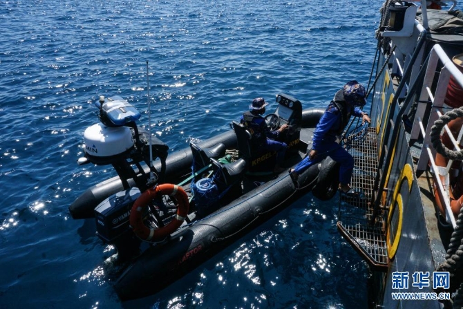 4月25日,搜救人員在印度尼西亞東爪哇省外南夢(mèng)參與搜尋失聯(lián)潛艇的工作。(庫爾尼亞萬/攝)