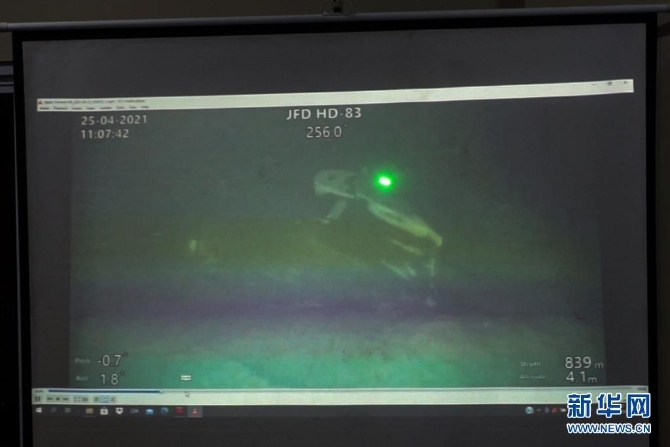 4月25日,印度尼西亞軍方在巴厘島舉行的新聞發(fā)布會(huì)上展示搜救船只使用水下機(jī)器人拍攝到的失事潛艇相關(guān)影像。(比興拉斯/攝)
