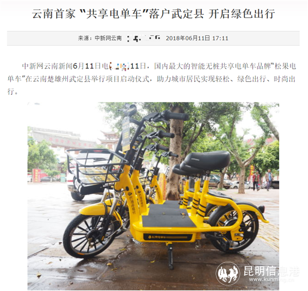 松果電單車2018年6月進(jìn)入云南第一城武定時(shí)媒體報(bào)道的截圖