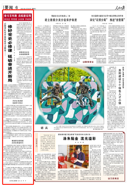4月28日《人民日?qǐng)?bào)》要聞版刊發(fā)文章,點(diǎn)贊云南省扎實(shí)開(kāi)展黨史學(xué)習(xí)教育,一起來(lái)看: