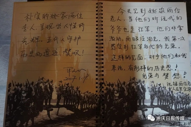 當(dāng)時,紅軍隊伍中有個還在襁褓中的嬰兒,在隊伍準(zhǔn)備離開去翻雪山時,姚家老人拿出自己的棉被,拆開縫成一個抱被讓其使用,這個嬰兒就是賀龍的女兒。紅軍長征勝利80周年時,為了感謝當(dāng)初的照料,賀龍的女兒為姚家后代送上了一床軍被。