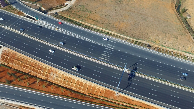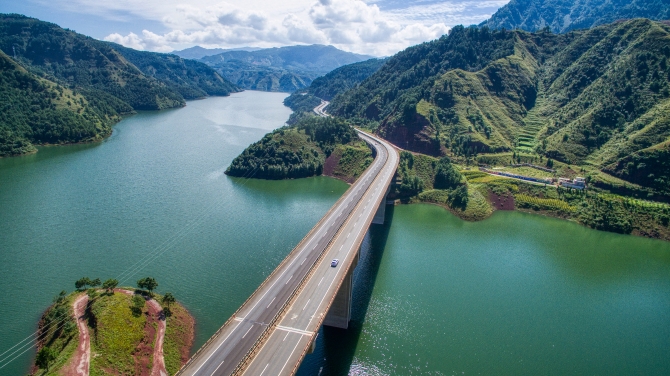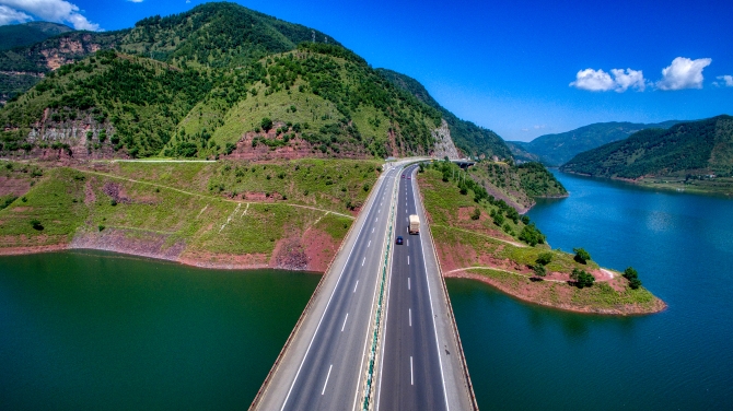 汽車奔馳在新修建的高速公路上 左濱洪攝