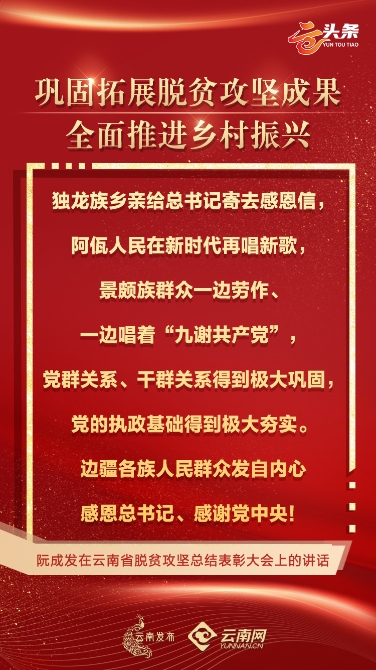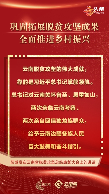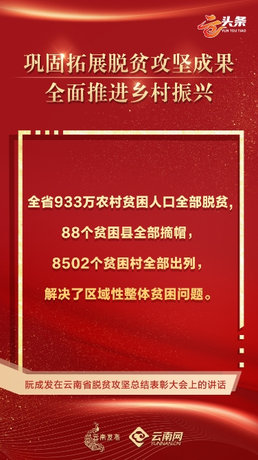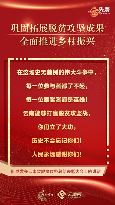 @所有云南人 今天上午,云南省脫貧攻堅(jiān)總結(jié)表彰大會(huì)隆重召開。云南在脫貧攻堅(jiān)征程上取得哪些輝煌成績?我省廣大干部群眾付出了哪些努力?金句來了!