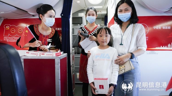 昆明信息港訊 記者上官艷君 為慶祝中國(guó)共產(chǎn)黨成立100周年,瑞麗航空黨委開展了系列黨史學(xué)習(xí)教育,重溫中國(guó)共產(chǎn)黨成立100周年以來的光輝壯闊的百年奮斗史。5月1日,瑞麗航空黨委將黨史學(xué)習(xí)教育課堂搬到萬(wàn)米高空,以唱紅歌、回顧黨的歷史等形式,與旅客現(xiàn)場(chǎng)互動(dòng),打造空中特色黨史課堂。
