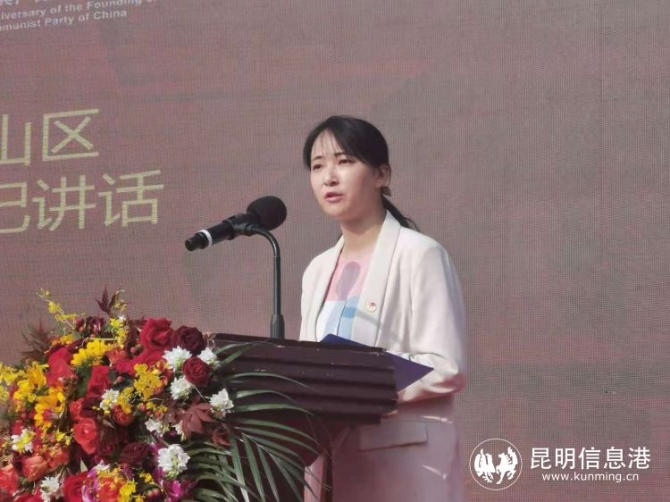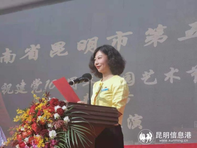 在隨后舉行的昆五中慶祝建黨100周年“不忘初心跟黨走 青春奮進新時代”藝術(shù)節(jié)暨五四青年節(jié)文藝匯演上,呂萍校長致辭。