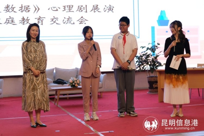 昆一中西山學(xué)校學(xué)生成長生涯規(guī)劃中心教師通過學(xué)生自演心理劇的方式,幫助孩子表達(dá)自己的心聲,讓家長聽聽孩子們的想法和需求。當(dāng)天,來自昆一中西山學(xué)校初一年級的家長們到校觀看了初一年級學(xué)生自排自演的心理劇《家庭數(shù)據(jù)》,結(jié)合心理劇中的家庭教育現(xiàn)狀,家長們與心理老師共同交流青春期孩子的家庭教育問題。