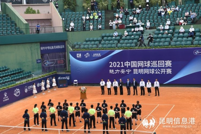 12時(shí)20分,2021中國(guó)網(wǎng)球巡回賽揭幕戰(zhàn)——CTA1000安寧站暨昆明網(wǎng)球公開(kāi)賽開(kāi)幕式在民族舞蹈《云南的春天》中拉開(kāi)帷幕。國(guó)家體育總局網(wǎng)球運(yùn)動(dòng)管理中心副主任白喜林宣布賽事開(kāi)幕。