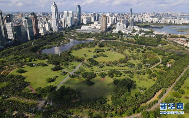 這是5月3日拍攝的海口市萬綠園(無人機(jī)照片)。