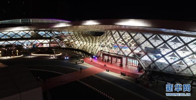 這是夜色下的首屆消博會(huì)舉辦地海南國際會(huì)展中心(5月4日攝,無人機(jī)照片)。