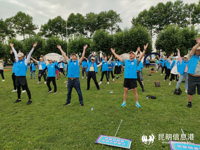上午9時(shí)許,度假區(qū)管委會機(jī)關(guān)、駐區(qū)單位干部職工齊聚海埂公園陽光大草坪,大家在工作人員帶領(lǐng)下壓腿、展臂,做起了廣播體操,還跟隨音樂律動跳起富有少數(shù)民族特色的健身操,為接下來的健步行做好熱身準(zhǔn)備。