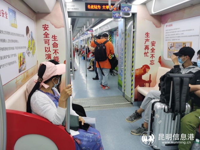 昆明首列“防災(zāi)減災(zāi)”“安全生產(chǎn)”地鐵宣傳專列正式開通。