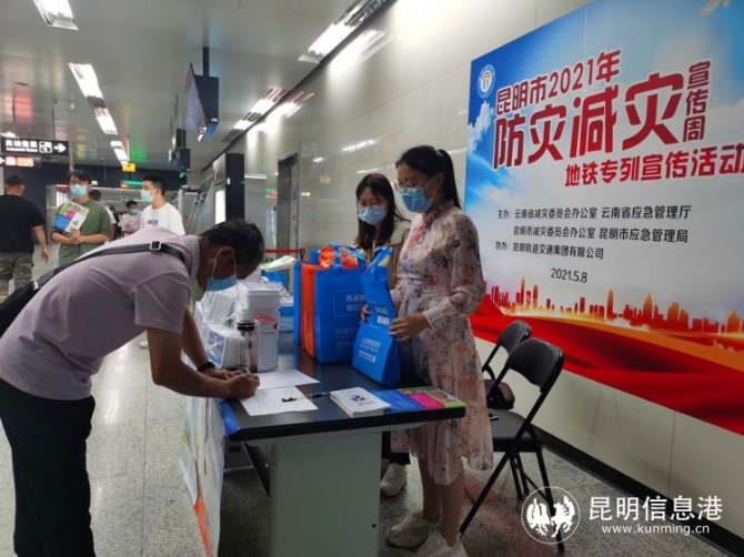 活動當天,昆明市應(yīng)急管理局還聯(lián)合昆明軌道交通集團有限公司在春融街地鐵站臺,開設(shè)了防災(zāi)減災(zāi)及安全生產(chǎn)宣傳專區(qū),向過往乘客發(fā)放防災(zāi)減災(zāi)及安全知識手冊,贈送防災(zāi)小應(yīng)急包及各類宣傳用品,方便大家在乘車之余學(xué)習掌握更多自救互救知識,提升應(yīng)急避險能力。