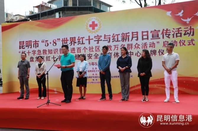 昆明信息港訊 記者李紅鸞 2021年5月8日下午,由昆明市紅十字會主辦,盤龍區(qū)紅十字會、昆明紅十字應(yīng)急救護培訓(xùn)中心、云南樂行運動健康管理有限公司承辦,盤龍區(qū)聯(lián)盟街道小壩社區(qū)協(xié)辦的“5.8“世界紅十字與紅新月日宣傳活動一一“紅十字急救知識普及進百個社區(qū),教萬名群眾大型活動”啟動儀式暨盤龍區(qū)紅十字生命健康安全體驗中心揭牌儀式在盤龍區(qū)聯(lián)盟街道小壩社區(qū)舉辦。