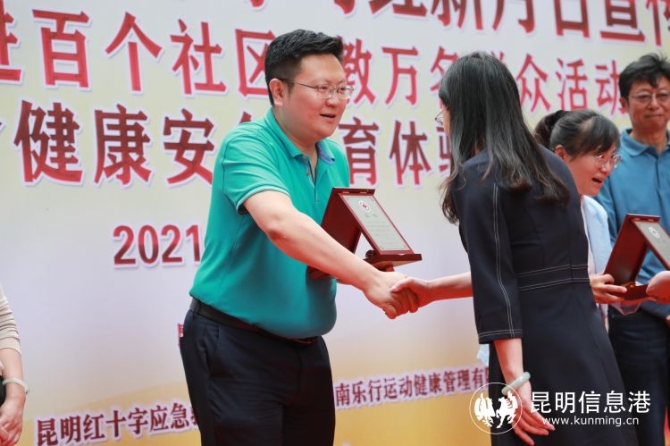 當(dāng)天,昆明市紅十字會“紅十字急救知識普及進百個社區(qū),教萬名群眾大型活動”啟動儀式同時在小壩社區(qū)開啟,首批對50余名群眾進行了應(yīng)急救護普及性培訓(xùn),活動中,昆明市紅十字會為2020年新冠肺炎疫情防控工作作出突出貢獻的捐贈企業(yè)(單位)頒發(fā)中國紅十字會獎?wù)陋勁?,昆明積大制藥股份有限公司、昆明產(chǎn)業(yè)開發(fā)投資有限責(zé)任公司、昆明華遠惠揚房地產(chǎn)開發(fā)有限公司、安寧創(chuàng)佳房地產(chǎn)開發(fā)有限公司榮獲“中國紅十字奉獻獎?wù)隆?。云南銅業(yè)股份有限公司榮獲“中國紅十字博愛獎?wù)隆???“l(fā)集團有限公司榮獲“中國紅十字人道勛章。