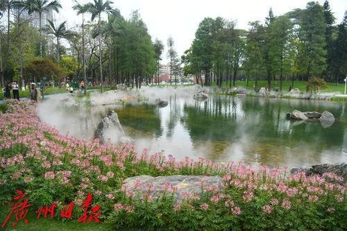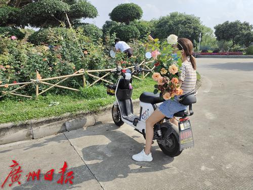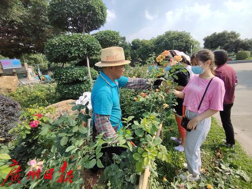 7日,番禺區(qū)大夫山公園,工人冒著酷暑修剪花圃,并把修剪下來的花枝贈(zèng)給游人。