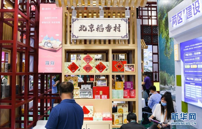 這是5月7日在首屆消博會上拍攝的北京稻香村展位。新華社記者 楊冠宇 攝