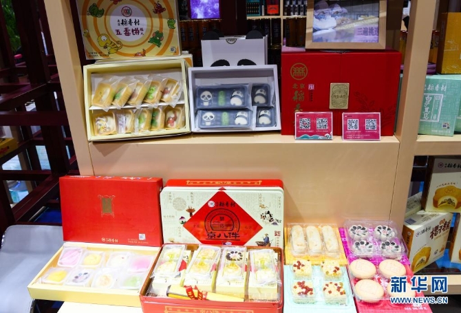 這是5月7日在首屆消博會上的北京稻香村展位拍攝的展品。新華社記者 楊冠宇 攝