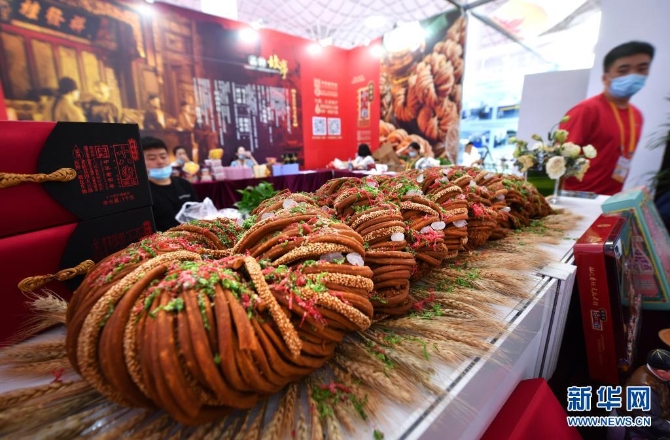 這是5月9日在首屆消博會上拍攝的天津桂發(fā)祥十八街麻花(5月9日攝)。新華社記者 郭程 攝